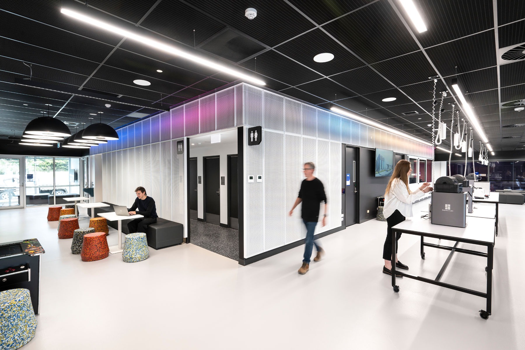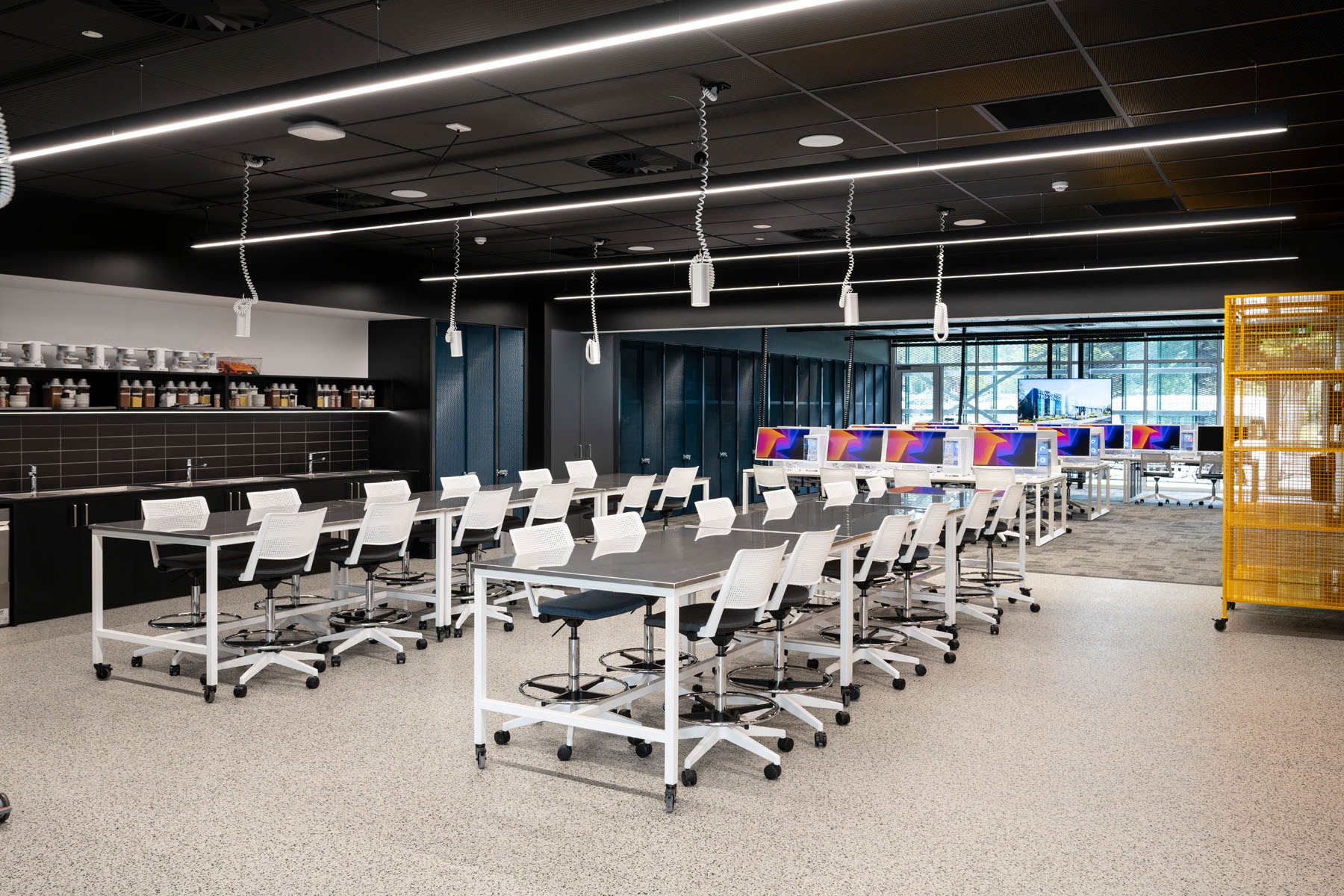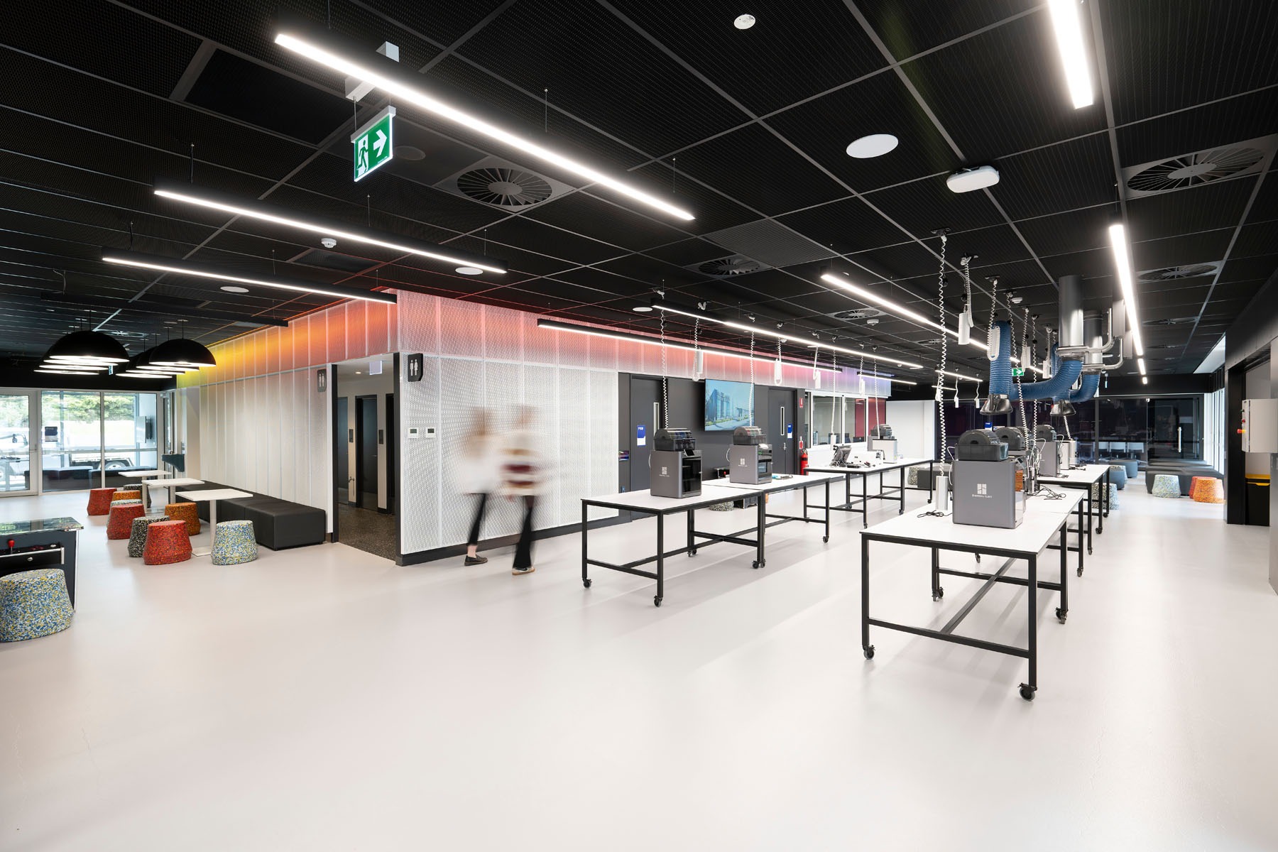 A key planning and design principle was to realise a spatial and functional solution which would support the facility through its establishment, then allow it to continually evolve as industry partnerships, curriculum programs and digital technologies are realised. The facility has been conceptualised as a space of innovation and inspiration, inspiring and engaging students, with the design “DNA” supporting immersive activities, collaboration and student agency. Spatial planning enables independent and concurrent project-based activities within a uniquely adaptable environment. Digital and fabrication studios, supported by flexible systems infrastructure, allow the facility to evolve with new technologies and learning models.