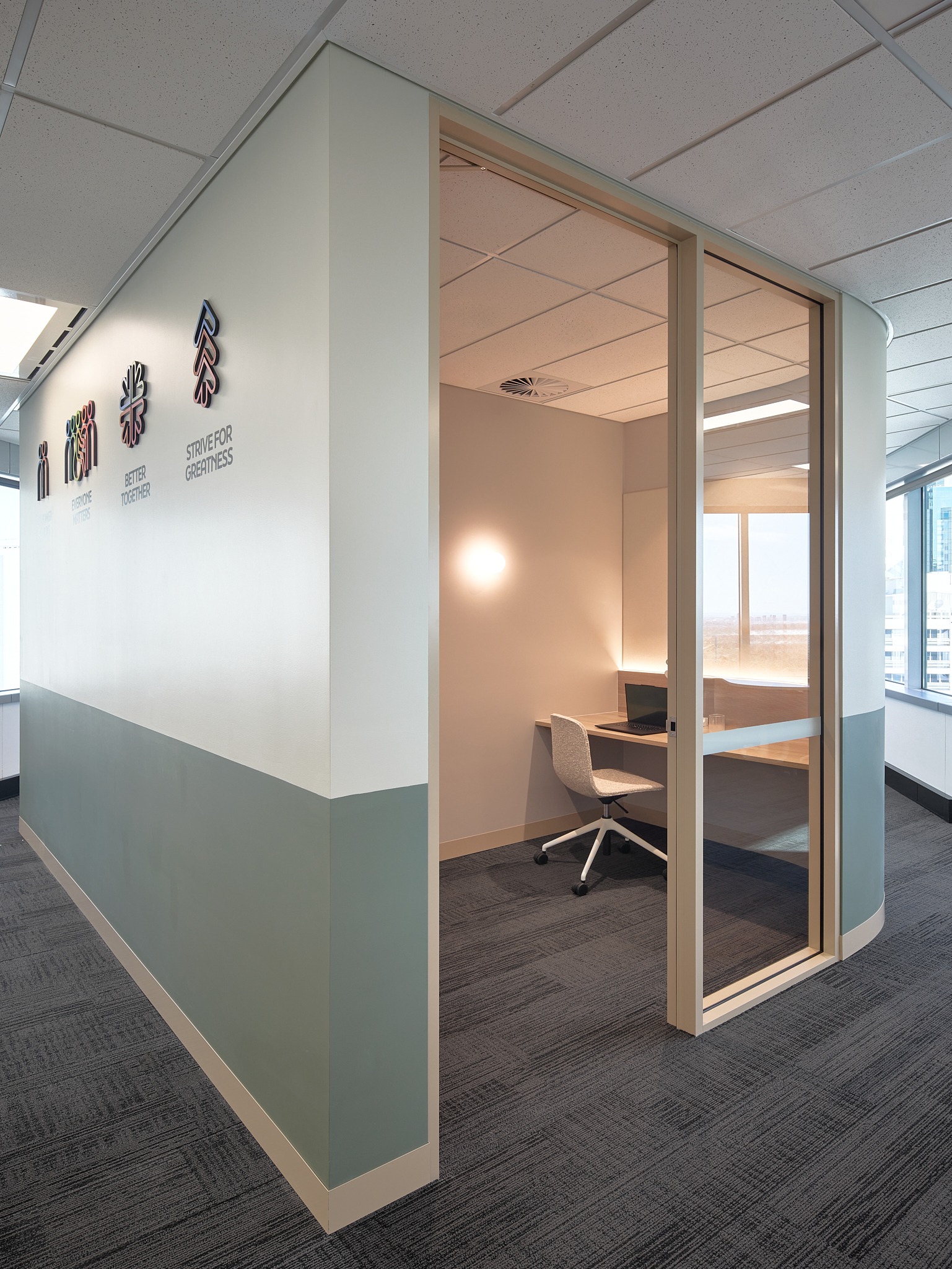 The result is a refined, inviting space that reflects McMillan Shakespeare’s values, supports hybrid work, and fosters a strong connection to nature.